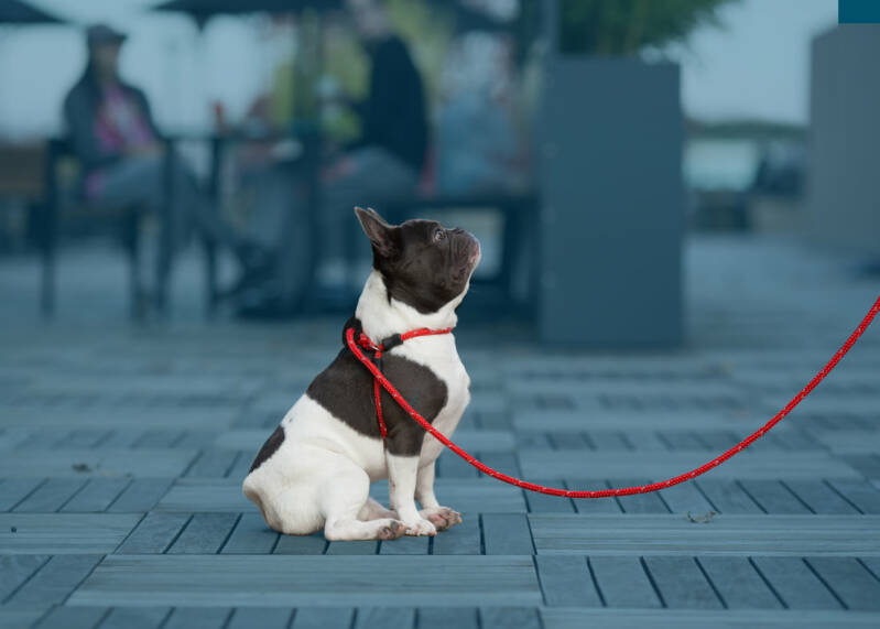 USE AS WALKING TOOL ONLY. DO NOT USE TO TIE DOG OUT UNATTENDED. NOT CHEW PROOF.
